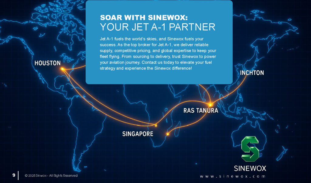 Jet A-1 fuels the world’s skies, and Sinewox fuels your success. As the top broker for Jet A-1, we deliver reliable supply, competitive pricing, and global expertise to keep your fleet flying. From sourcing to delivery, trust Sinewox to power your aviation journey. Contact us today to elevate your fuel strategy and experience the Sinewox difference!